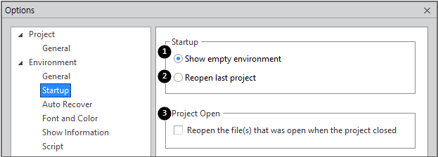 3 | Number of recent projects displayed in the list | It sets the number of project lists displayed in the menu [File > Recent Projects]. It can set up to 16. |