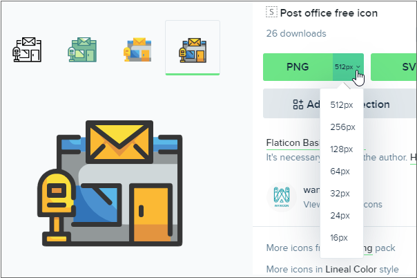 무료로 제공되는 아이콘 이미지 사이트에서 원하는 이미지를 찾아서 내려받습니다. flaticon.com에서는 크기별로 아이콘 이미지를 제공합니다. 16px, 32px PNG 이미지를 내려받습니다.