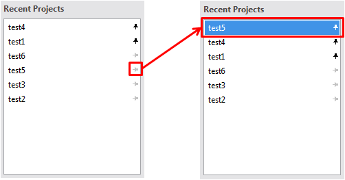 >> "Start Page의 "Recent Project"의 팝업 메뉴를 통해서 해당 프로젝트를 고정할 수 있습니다.