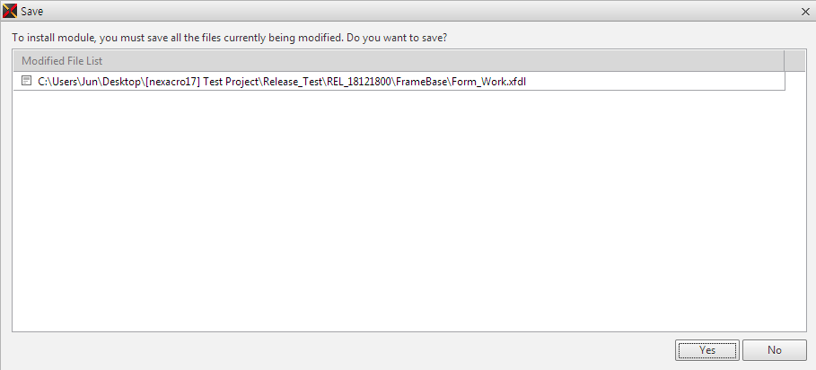 1. nexacrostudio에서 Install Module시 현재 편집 중인 파일을 저장할 수 있는 기능을 추가했습니다. (RP. 82871)