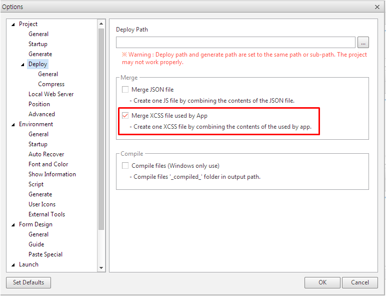 >> 해당 기능은 "nexacrostudio 메뉴의 [Option] - [Proejct] - [Deploy] - [Merge] - [Merge XCSS file used by App]" 옵션을 체크하면 사용할 수 있습니다.