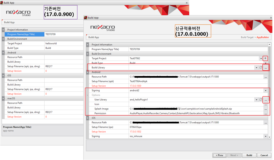 넥사크로 스튜디오의 BuildApp Wizard로 Android/iOS/MacOS의 빌드를 수행할 때 앱 빌더 서버에 프로젝트가 없으면 deploy.ini 파일의 projectindex 값이 변경되지 않는 오류를 수정했습니다.
