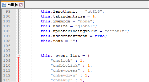 }넥사크로플랫폼 라이브러리 폴더에서 Edit.js 파일을 확인해보면 다음과 같이 이벤트 목록을 정의하고 있습니다.