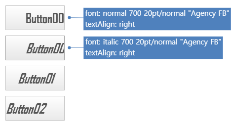 텍스트를 표시하는 컴포넌트에서 -nexa-text-align 속성값을 "right"로 지정하고 font 속성에서 font-style 속성값을 "italic"으로 지정하는 경우에는 font-family 속성값이나 font-size 속성값에 따라 오른쪽에 표시되는 글자 일부가 잘려서 표시될 수 있습니다.