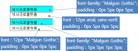 WRE에서 -nexa-icon 속성 설정 여부와 폰트 타입에 따라 텍스트가 표시되는 위치에 차이가 발생할 수 있습니다.