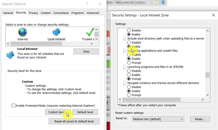"향상된 보호 모드" 옵션 활성화 시 파일 내려받기 기능 제약