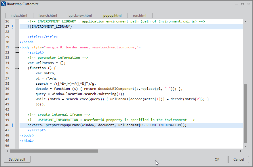 Bootstrap Customize 템플릿 내 스크립트 코드 주석 형태를 변경했습니다. (RP 94347)