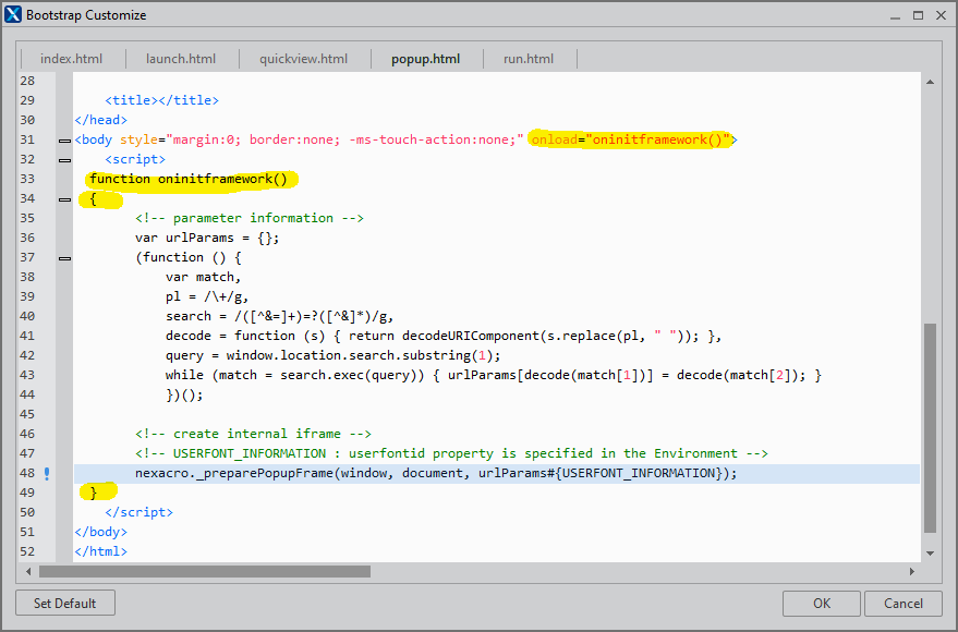 Nexacro Studio, Nexacro Module Developer에서 스크립트 편집 시 매칭되는 괄호를 강조 표시(라운드형 박스)하는 기능을 추가했습니다. (RP 94408)
