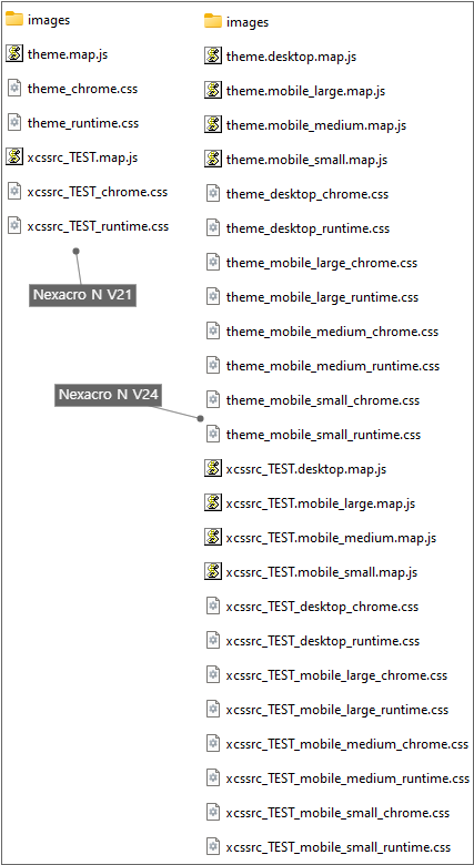 When a theme or XCSSResource is generated to support screen types, additional files will be generated for each screen type.