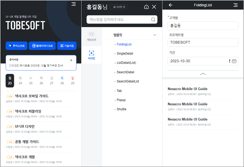 모바일 환경을 지원하는 프로젝트 개발 시 활용할 수 있는 디자인 템플릿과 트랜잭션, 팝업, 메시지 처리 등의 공통 기능 스크립트를 제공합니다.
