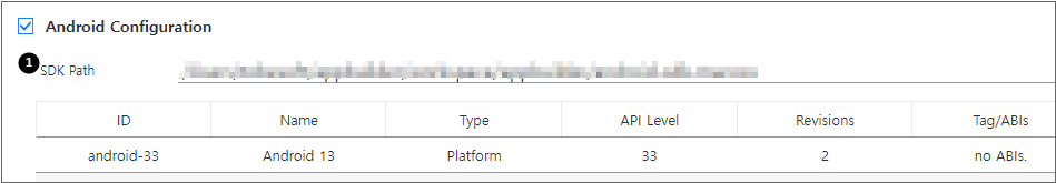 SDK Path 항목 설정 후 설치된 Android SDK 목록이 표시되지 않는 경우에는 아래 사항을 확인합니다.