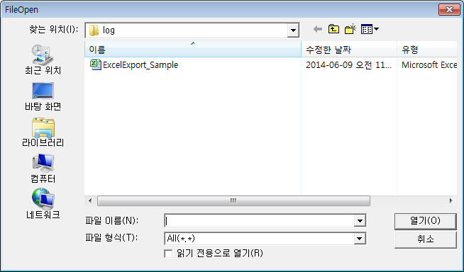 아래 그림에서 File Open 버튼을 클릭하면 파일 선택 대화 상자가 표시됩니다.
